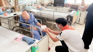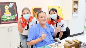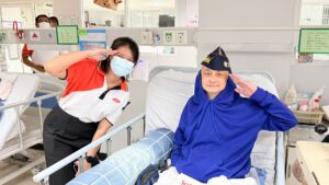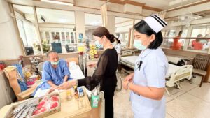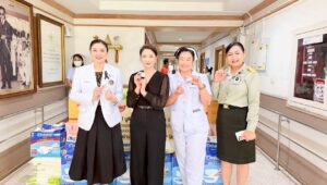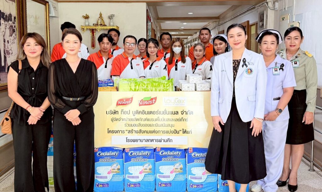 ได้เดินทางไปมอบสิ่งของจำเป็น ผลิตภัณฑ์ Ninest, Laytex และเงินสนับสนุนแก่ โรงพยาบาลทหารผ่านศึก