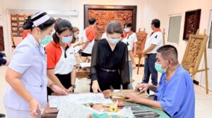 ระหว่างการเยี่ยมชม ศูนย์กิจกรรมบำบัดและฝึกอาชีพทหารผ่านศึก
